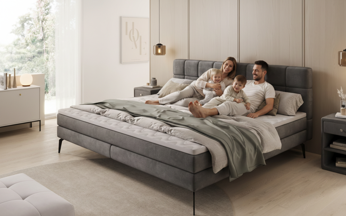Eis Familljebetten bidden zousätzlech vill Plaz fir gemeinsam Nuechten. Generéis Liegflächen, héichwäerteg Komfort a modern Design - perfekt fir Elteren, Kanner an all déi, déi méi Raum gär hunn.