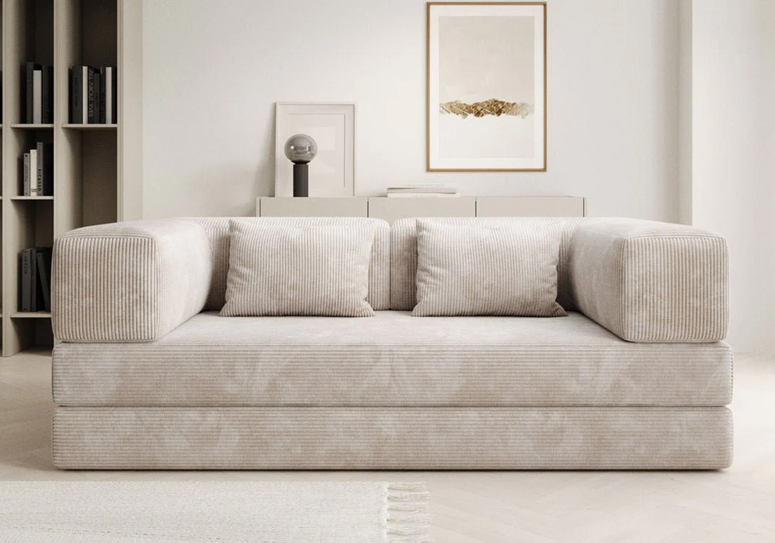 Dank sengem cleveren Falt-Design léisst et sech an nëmmen e puer Sekonnen vum schicke 3-Sëtz an en grousst Bett verwandelen – ouni Werkzeug, ouni Oflaf. Perfekt fir kleng Wunnengen, Gäschtzëmmer oder fir all déi, déi multifunktional Möbel gär hunn.