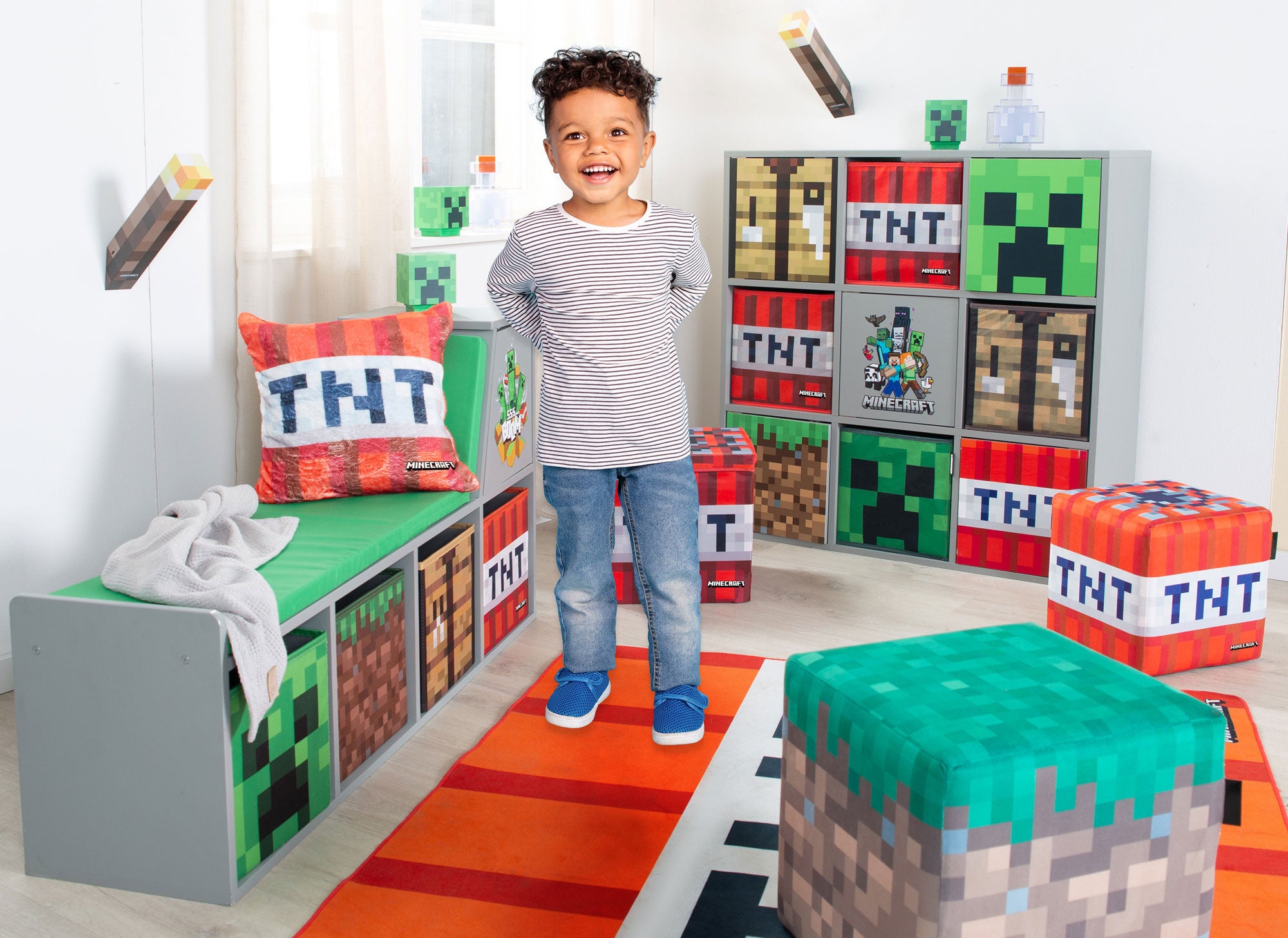 Dank der weichen Polsterung und der ikonischen Minecraft-Gestaltung passt das Sofa ideal unter oder neben das Minecraft-Kojenbett und wertet jedes Kinderzimmer optisch auf. Perfekt für Übernachtungsgäste, Leseecken oder Gaming-Bereiche.